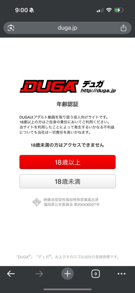 Look at the DUGA homepage. Since you cannot read Japanese, rely on the colors and positions.「18歳以上」Click